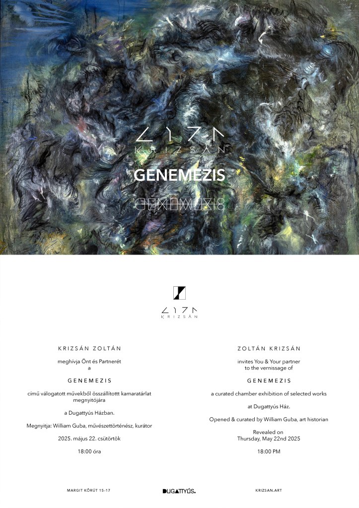Zoltán Krizsán (1981) graduated from the Hungarian University of Fine Arts in 2005 as a painter. His talent was marked by monumentality, and his earliest works were created in the charm of figurativeness and tense chiaroscuro in sizes worthy of the Old Masters. It should be said to his honor and artistic validity that – although he has often been compared to him – he was not crushed by the shadow of Csernus and was able to cultivate a unique and self-identical, sovereignly inhabited painting. He works with traditional techniques (oil, charcoal on wood panel), but his painting practice has now transformed Baroque figurativeness into the depths of abstract expressionism. He belongs to those few representatives of his generation who were able to turn the abstract expressionist aspirations after Cy Twombly into new painterly directions and revitalize them from within. (William Guba)