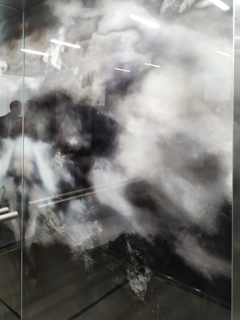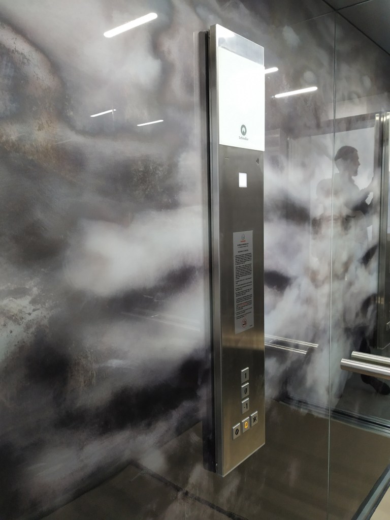 glass mural: elevator installation