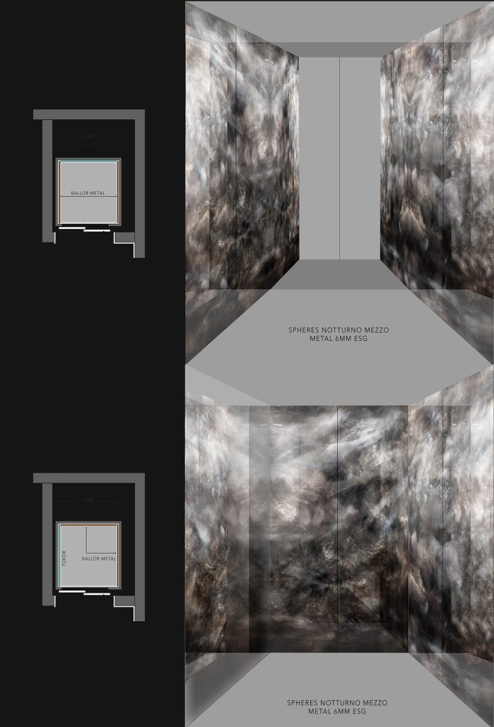 The client’s idea was to levitate, the architect’s was to keep it a silent composition fine art. The seemingly monochromatic vision is made of colors and the art changes it’s temperature and shades constantly.